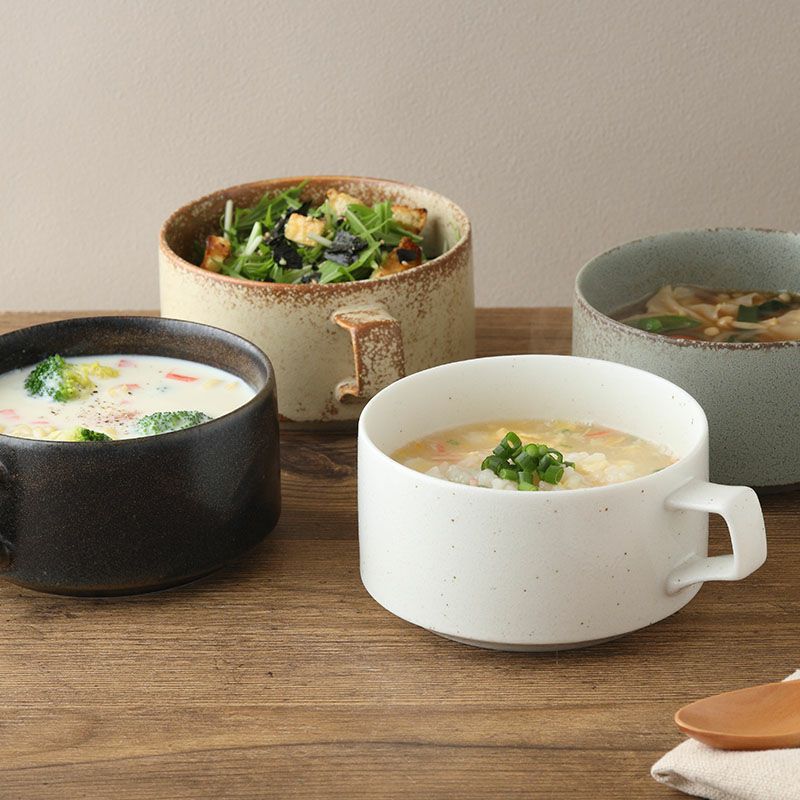 落ち着いた色合いが魅力の美濃焼スープカップ。4色展開で、和洋問わずどんなテーブルにも馴染みます。 おすすめは、ポタージュやミネストローネなどのスープ類。具沢山スープもしっかり収まり、見た目も美しく映えます。 スープカップとしてだけでなく、サラダボウルやデザート、アイスに使える万能さが魅力。もちろん、コーヒーやカフェオレなどホットドリンクにも最適。 上品な仕上がりと実用性を兼ね備えたデザインで、日常使いにもギフトにもぴったりの一品です。