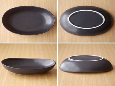 シンプルモダンなオーバルボウル。黒い食器/カレー皿 おしゃれ/パスタボウル/美濃焼/盛り皿