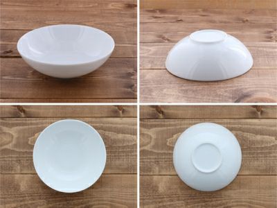 シンプルでスタイリッシュな白磁の食器、「クレール」シリーズ。基本の種類・サイズを揃えています。 約16.8cmは、サラダボウル、煮物鉢、副菜鉢に便利な中鉢サイズ。 サラダが1?2人分ほど入るので、ディナーのおかずにオススメ。 深さがあるので、煮汁の多い料理やドレッシング、ソースをかけるメニューにも使いやすいですよ。 お子様用のパスタ皿、カレー皿、どんぶりなど、子供食器としても重宝します。