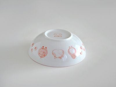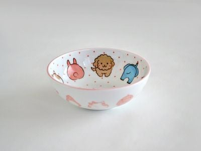 扱いやすい磁器の器に、可愛らしい動物のイラストがプリントされたキッズボウル。。 イヌ・ネコ・ウサギ・ブタ・トリ・ゾウのイラストがポップに描かれています。お尻を向けている姿はとってもキュート! これなら小さなお子様も、お父さんお母さんと一緒にお食事が楽しめますね。 サラダや、デザート・フルーツを盛り付けるのにぴったりなサイズ。深さがあるので、汁気のあるおかずも盛り付けOK。もちろん、取り皿としても使えます。