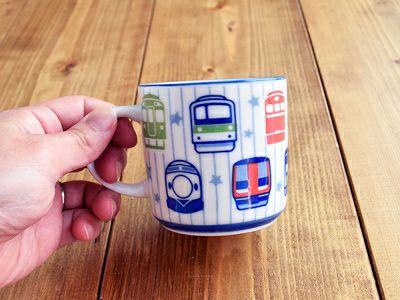 扱いやすい磁器の器に、可愛らしい電車のイラストがプリントされたキッズ用マグカップ。 外側には電車や新幹線のイラストがポップに描かれています。 これなら小さなお子様も、お父さんお母さんと一緒にお食事が楽しめますね。 小ぶりなマグカップなら子供も持ちやすいので、毎日活躍してくれますよ。