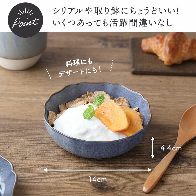 和食・洋食問わず盛り付けたお料理を引き立てる花形の小鉢です。 シンプルなお料理も盛り付けるだけでおしゃれに。華やかな食卓を演出してくれます。 14cmサイズは、副菜の小鉢やサラダボウルやアイスクリームのデザートカップなどにおすすめ。 普段のお食事からちょっとしたおもてなしまで大活躍間違いなしです。