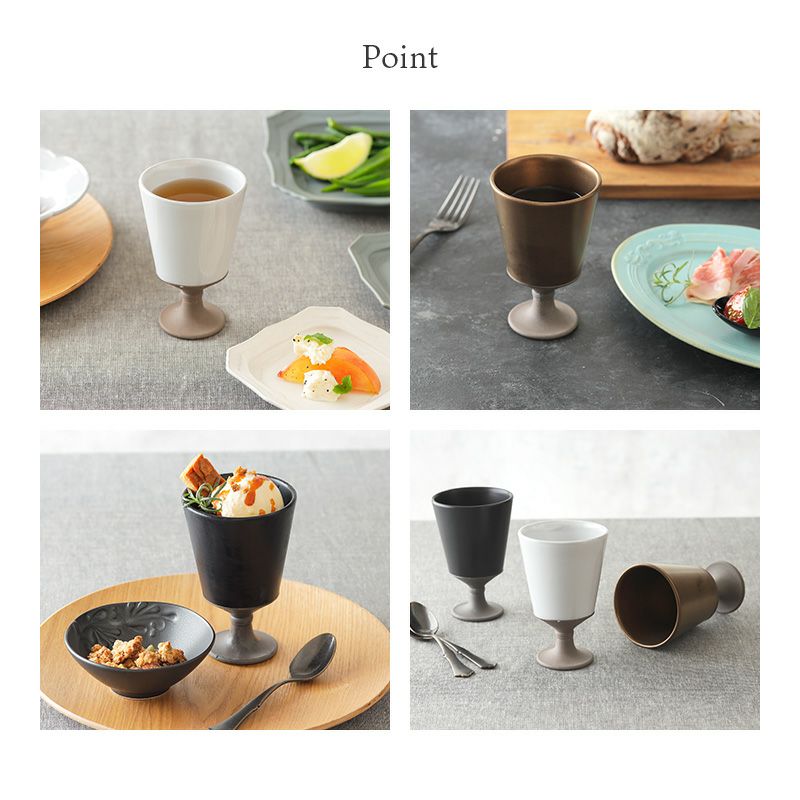 高級感のあるおしゃれなカップ。 雰囲気がぐっと引き締まって、テーブル全体を大人風にコーディネート。 自宅でのブレイクタイムはもちろん、来客食器、パーティー食器などおもてなしにもぴったり。 ヨーグルトボウル、アイスカップなどデザートカップとしても使えます。