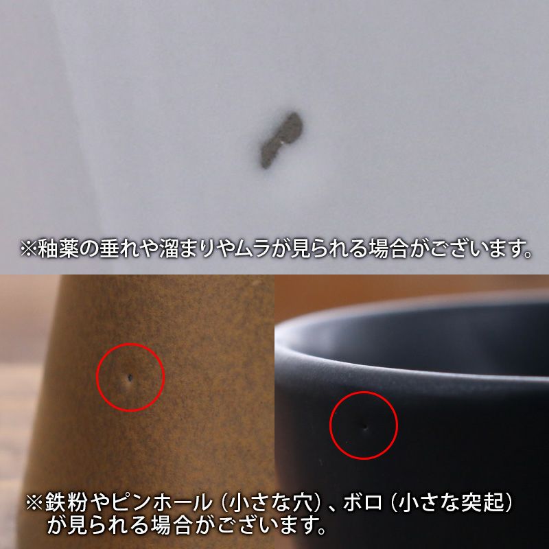 | 注意事項 | ※サイズは全て外寸になります。 ご注意 ※鉄粉やピンホール(小さな穴)、ボロ(小さな突起)が見られる場合がございます。 ※釉薬の垂れや溜まりやムラが見られる場合がございます。 ※多少の傾きがありますが使用上問題ありません。 ※色飛びが見られる場合がございます。 ※お客様のお使いのモニター設定、お部屋の照明等により実際の商品と色味が異なって見える場合がございます。 ※画像に含まれる小物は使用イメージのために使用しています。 ※不明な点がございましたら、お気軽にお問い合わせ下さい。 |