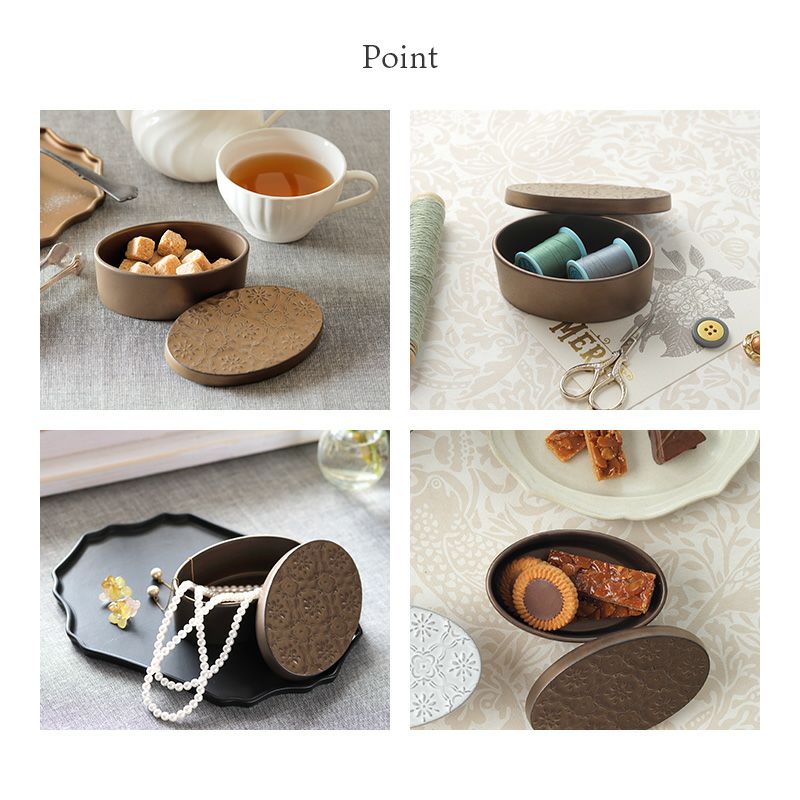 高級感のある陶器のボックス。 重厚感もありアンティークな雰囲気で、食卓やインテリアのアクセントになります。 ちょとしたお菓子を盛り付けるのにぴったり。小物入れとしても便利です。 華やかに演出したいおもてなしアイテムとしてもおすすめです。