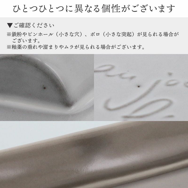 | 機能 | 電子レンジ・食洗機・オーブン・直火不可 ※サイズは全て外寸になります。 ※サイズ・重さなどは商品により誤差があります。 ご注意 ※鉄粉やピンホール(小さな穴)、ボロ(小さな突起)が見られる場合がございます。 ※釉薬の垂れや溜まりやムラが見られる場合がございます。 ※お客様のお使いのモニター設定、お部屋の照明等により実際の商品と色味が異なって見える場合がございます。 ※画像に含まれる小物は使用イメージのために使用しています。 ※不明な点がございましたら、お気軽にお問い合わせ下さい。 |