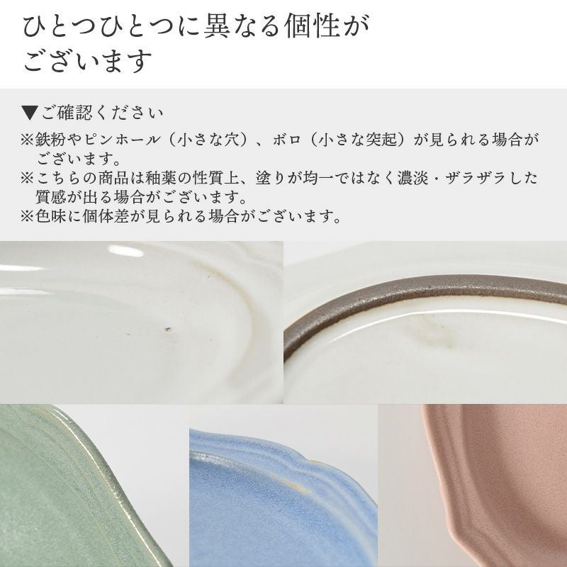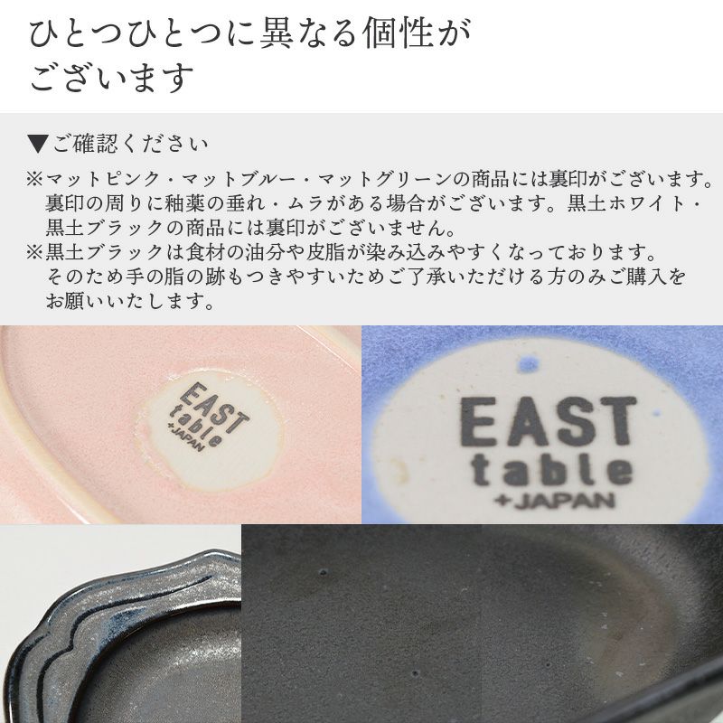 | 注意事項 | ※サイズは全て外寸になります。 ※サイズ・重さなどは商品により誤差があります。 ご注意 ※鉄粉やピンホール、ボロ、色味に個体差が見られる場合がございます。 ※釉薬の性質上、濃淡・ザラザラした質感が出る場合がございます。 ※黒土ブラックは食材の油分や皮脂が染み込みやすく,手の脂の跡もつきやすいためご了承ください。 ※お客様のお使いのモニター設定、お部屋の照明等により実際の商品と色味が異なって見える場合がございます。 ※画像に含まれる小物は使用イメージのために使用しています。 ※不明な点がございましたら、お気軽にお問い合わせ下さい。 |