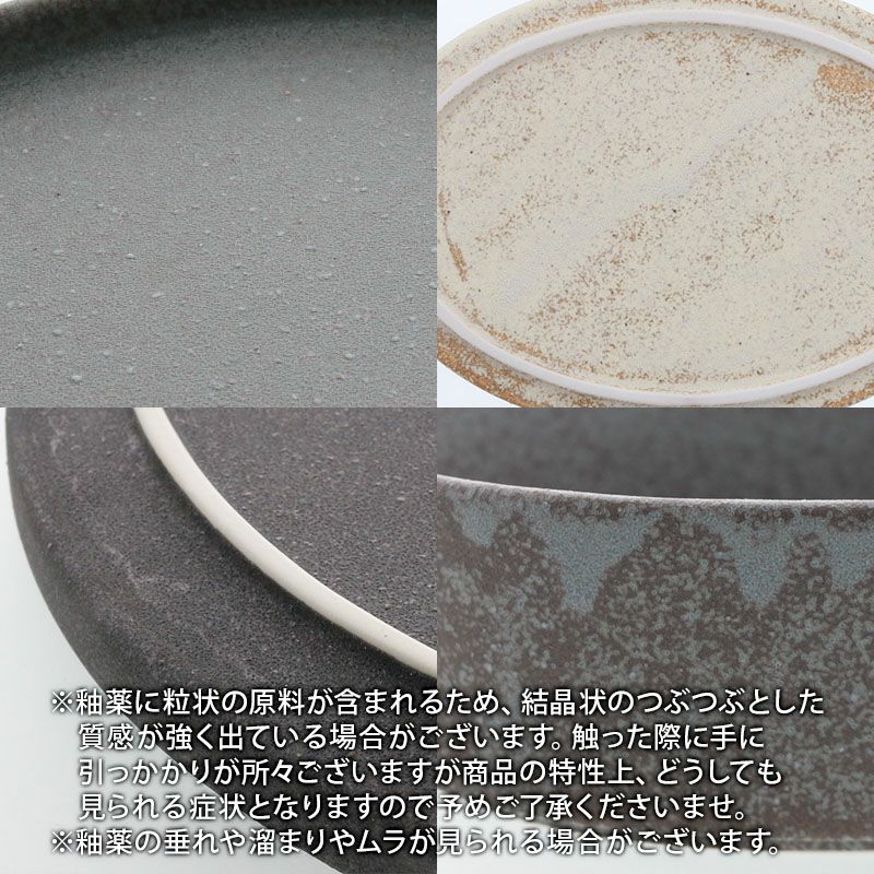 | 注意事項 | ※サイズは全て外寸になります。 ※サイズ・重さなどは商品により誤差があります。 ご注意 ※色味・釉薬の質感に個体差が見られます。 ※ピンホール(針で突いたような小さな穴)・ボロ・釉薬の垂れや溜まりやムラ・挟み跡・釉ギレ(貫入のような症状)が見られる場合がございます。 ※釉薬に粒状の原料が含まれるため、結晶状のつぶつぶとした質感が強く出ている場合がございます。商品の特性上、どうしても見られる症状となりますので予めご了承くださいませ。 ※お使いのモニター設定、お部屋の照明等により実際の商品と色味が異なって見える場合がございます。 ※画像に含まれる小物は使用イメージのために使用しています。 ※不明な点がございましたら、お気軽にお問い合わせ下さい。 |