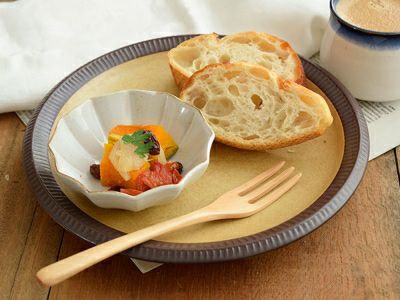 淡いお花が、料理を包み込む手造りのうつわ。