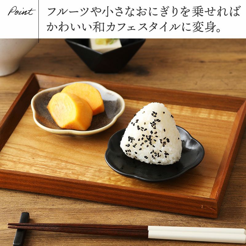 何気ない和食をおしゃれにみせてくれる、渋みある小皿。 モダンな雰囲気で様々な料理に馴染んでくれます。 ティータイムの菓子皿としてや、フルーツ皿、おつまみ皿、小さめの取り皿などにぴったり。 日常使いはもちろん、料理を品よく見せてくれるのでおもてなし食器としてもおすすめです。