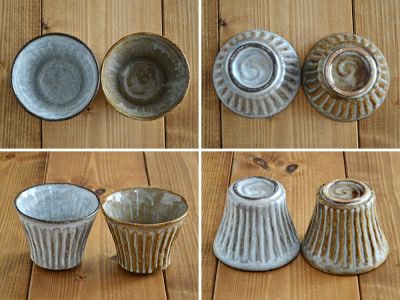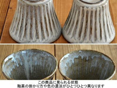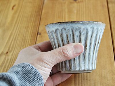 しのぎの凹凸が手によく馴染む和のカップです。溝の部分に流れ込んだ釉薬が独特の表情をつくり、落ち着いた和の雰囲気を楽しませてくれます。こちらはお茶やカフェオレを楽しむ他に、ちょっとした副菜用の小鉢やそば猪口、デザートカップとしてもオススメのサイズです。