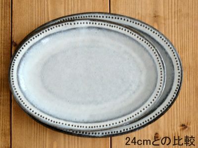黒土白釉 ドット オーバルプレート 21cm