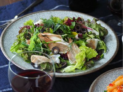 エイやサメ類の魚皮のことをかいらぎといい、戦国時代や江戸時代にはその皮を研いで様々な装飾に用いていました。 茶碗を焼く際に溶けきらなかった釉薬が縮れて残った状態がその模様に似ていることから「かいらぎ」と呼ばれるようになり、こちらの商品はその縮れ模様を表現したシリーズです。 複雑に入った模様は一つ一つ表情が異なり、和食はしっくり馴染み、洋食はモダンな印象にしてくれます。普段の何気ない料理も特別に感じさせてくれそう。 縁にある素地の黒色が料理を引き締め、色鮮やかな食材・料理にもよく合います。 大皿はパスタ皿、メイン料理、ワンプレートなどにおすすめ。 和洋問わず、いろいろな料理を盛りつけて楽しめます。