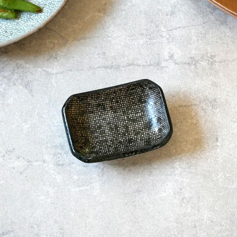 蚊帳目模様がおしゃれな和食器。 細かいチェック模様のような蚊帳目はモダンな雰囲気で、様々な料理に馴染んでくれます。 お醤油皿や薬味皿としてはもちろん、ちょっとしたおかずの器にぴったり。 日常使いはもちろん、料理を品よく見せてくれるので、おもてなし食器としてもおすすめです。