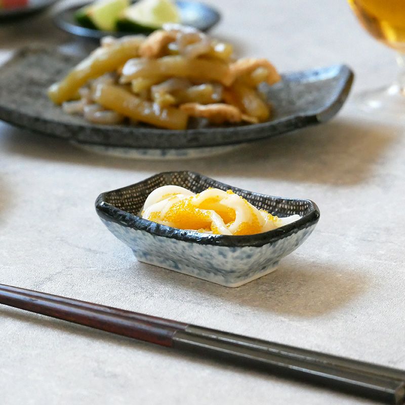 長角小皿 9cm 藍ちらし蚊帳目