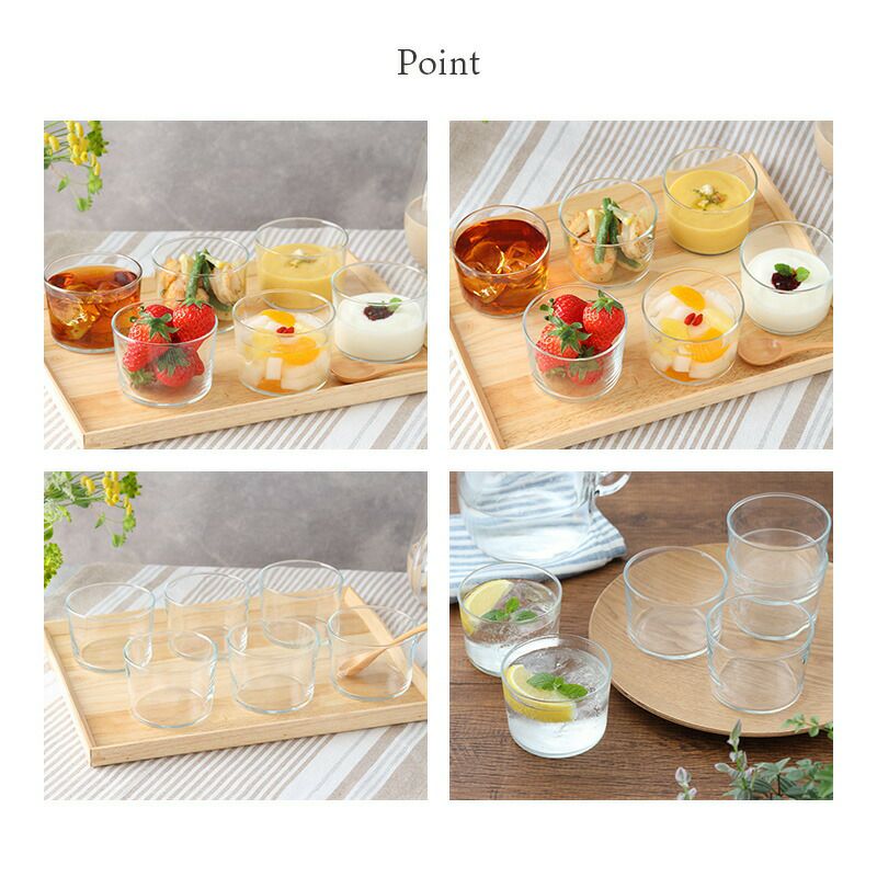 ボデガシリーズは、スッキリとしたシンプルなシルエットが特徴的です。 ミネラルウォーターやワインを注いで毎食のお供にしたり、サラダやデザートを盛り付けてカフェ風のおしゃれランチにしたりと活躍の場は様々。 サラダやデザートは食材が横から見えるので、見た目にも鮮やかで素敵なテーブルを演出できます。 12点セットなのでおもてなし用や飲食店の業務用食器としてもおすすめです。 セット内容 ガラスカップ 200cc×12点