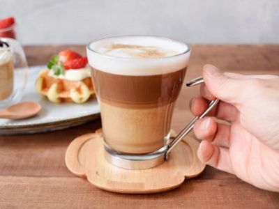 Bormioli Rocco(ボルミオリ・ロコ)のスタイリッシュなカフェグラス。イタリアのカフェでポピュラーなもののひとつとなっています。ステンレス製の取っ手は清潔感があるだけでなく、温度の高いドリンクを入れても熱くならない工夫が施されています。熱々の珈琲やホットミルクをお楽しみ頂けますよ♪