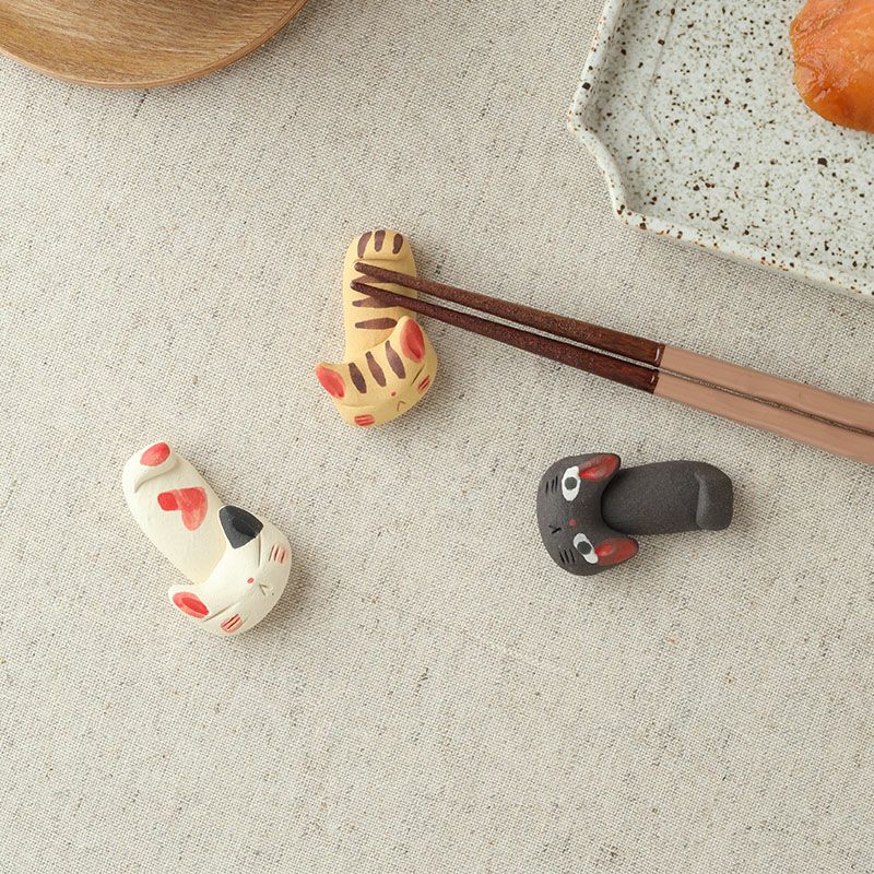 猫好きにはたまらない♪かわいらしい手造りのミケ猫・黒猫・トラ猫モチーフの箸置き。 なんとも言えない表情がとても愛くるしく、毎日食卓に並べたくなりますね♪ 普段使いはもちろん来客時のおもてなし用や、子供食器との相性も◎ その日の気分で食卓の雰囲気を気軽に変えられるところがキッチン雑貨のいいところです。