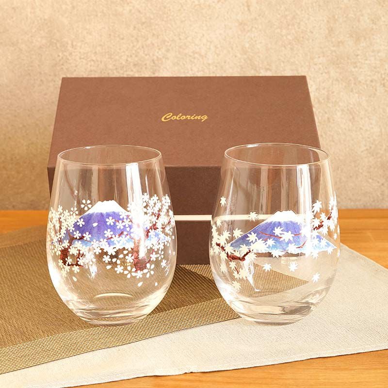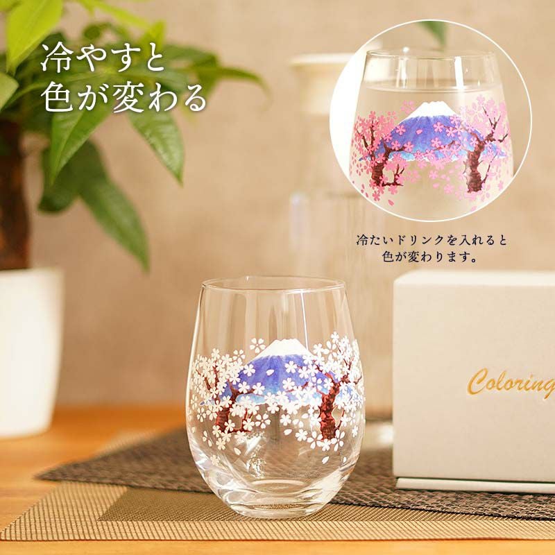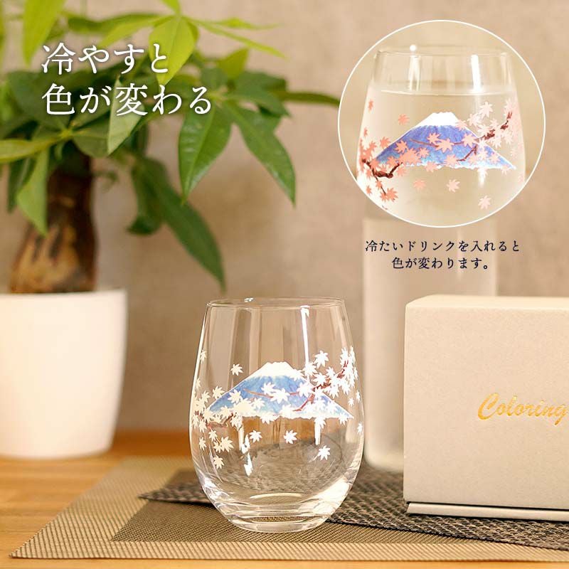 グラスにお水やお酒などを注ぐと、絵柄の色が変化する遊び心のあるおしゃれなガラス食器。趣のある和風絵柄で見た目も楽しめるタンブラーは幅広い年齢層の方へ贈って喜ばれるペアギフトです。