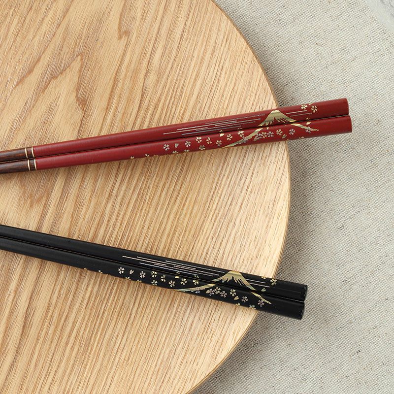 箸 23cm 天然木 食洗機対応 滑り止め加工 金彩富士