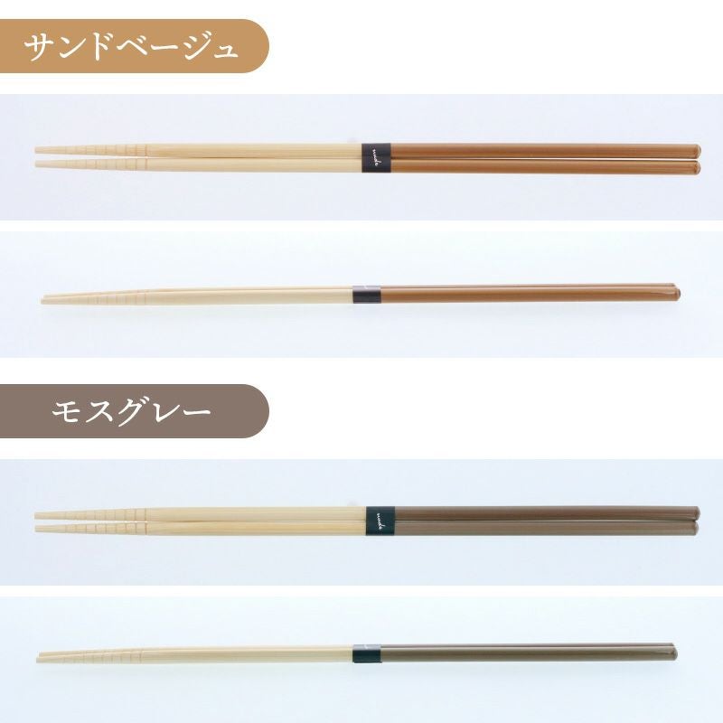 ニュアンスカラーがおしゃれな菜箸です。 食洗機対応で、デイリー使いにぴったり。 長さがあるので、揚げ物にもお使いいただけます。 先端部分にはすべり止め加工がしてあるので、食材をしっかりつかめます。