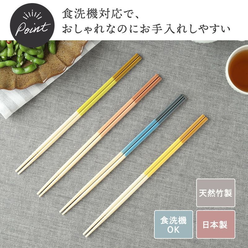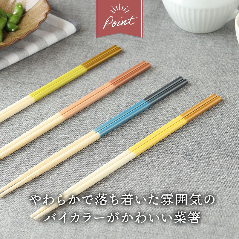 カラフルでかわいい菜箸です。 食洗機対応で、デイリー使いにぴったり。 長さがあるので、揚げ物にもお使いいただけます。 先端部分にはすべり止め加工がしてあるので、食材をしっかりつかめます。