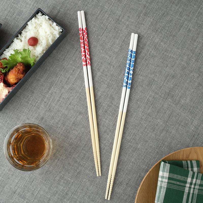 気分も上がる色鮮やかな菜箸です。 調理や料理の取り分けなどデイリー使いにぴったり。 長さがあるので、揚げ物にもお使いいただけます。 先端部分にはすべり止め加工がしてあるので、食材をしっかりつかめます。