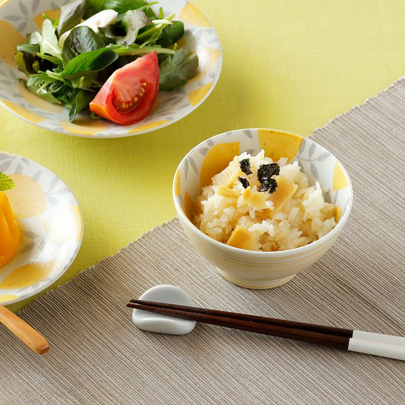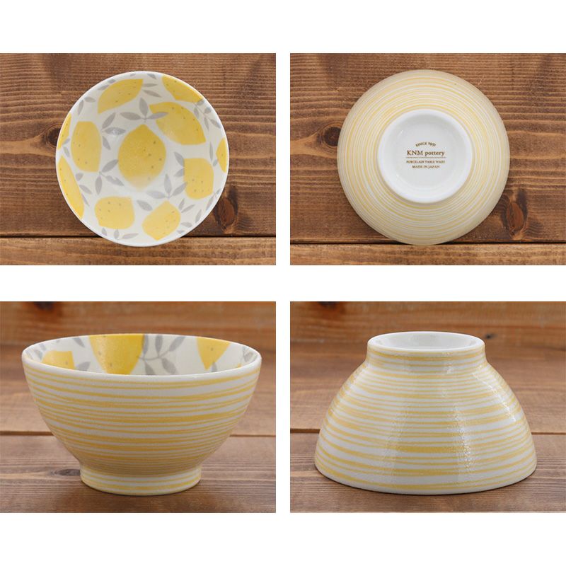 鮮やかなレモン柄が食卓を彩るお茶碗。 和食だけでなく、洋食メニューの時にも合わせやすいデザインです。 ご飯だけでなく、スープボウル、サラダボウル、おかず鉢など、様々な用途にお使いいただけます。 こちらは少し小さめのサイズで、女性やお子様におすすめです。