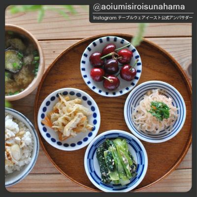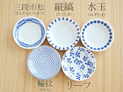白地に瑠璃色で絵柄が描かれた、ちょこんと可愛らしい豆皿。漬物・おしょうゆ皿だけじゃもったいない!箸置き、受け皿、異なる柄を並べておつまみをちょこちょこのせて・・・自由気ままな使い方ができ、食卓が賑やかになる楽しい食器です。