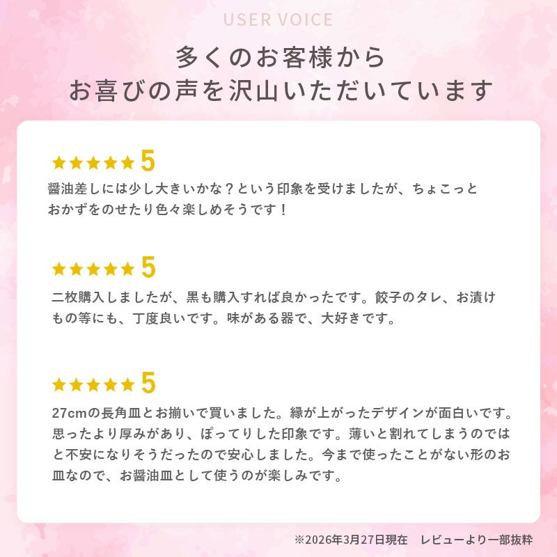 | 注意事項 | ※商品により釉薬のかかり方・色味が異なる場合がございます。 ※全体的に結晶状のつぶつぶと質感が強く出ている場合がございます。商品の特性上、どうしても見られる症状となりますので予めご了承くださいませ。 ※お客様のお使いのモニター設定、お部屋の照明等により実際の商品と色味が異なって見える場合がございます。 ※画像に含まれる小物は使用イメージのために使用しています。不明な点がございましたら、お気軽にお問い合わせ下さい。 |