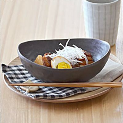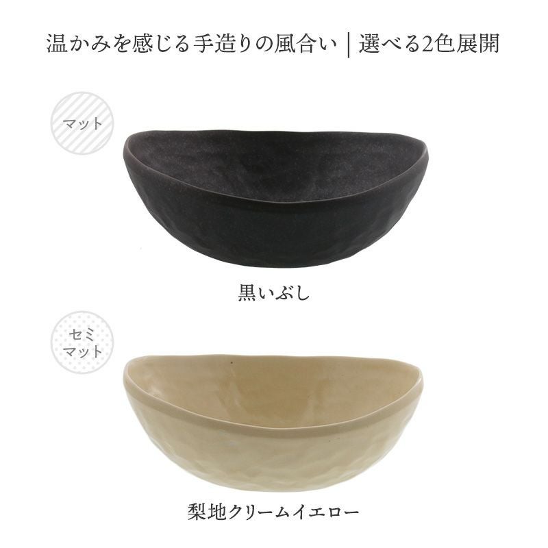 手造りの風合いが優しい雰囲気のボウル。珍しい深めの舟形です。この深さがより使い道を広げ、スープやシチュー、丼まで楽しめる器に。野菜を加えた丼を盛り付ければ、和風カフェのような雰囲気が楽しめそう。