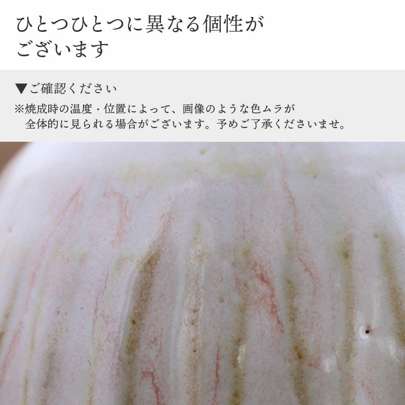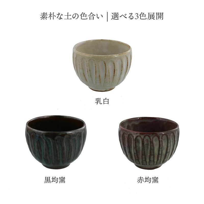 丸みを帯びたゆったりとしたフォルムが手に馴染む和のうつわ。ひとつひとつ異なるしのぎのラインと釉薬の色合いに手造りの温かみを感じます。