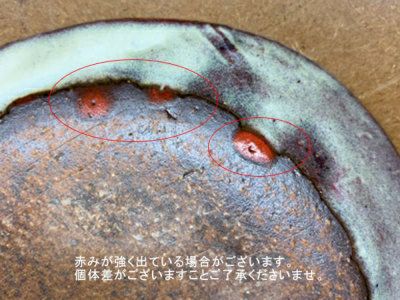 | 注意事項 | ※サイズは全て外寸になります。※不明な点がございましたら、お気軽にお問い合わせ下さい。 ・ ※こちらの商品は、釉薬のムラ、鉄粉、ピンホールなどが見られます。 ※1つ1つの色合いや形、大きさが違います。手作りの特性として予めご了承くださいませ。 ※裏面に線状の筋が見られますが、製造上みられる症状となりますのでご了承くださいませ。 ※お客様のお使いのモニター設定、お部屋の照明等により実際の商品と色味が異なって見える場合がございます。 |