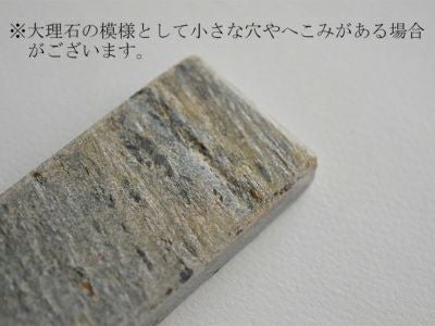 | 注意事項 | ※サイズは全て外寸になります。※天然石の特質として、色合いに差が生じます。 ※不明な点がございましたら、お気軽にお問い合わせください。 ※こちらの商品は、厚みや大きさに個体差が見られます。 ※角が尖らないよう削ってありますが、削り具合には個体差が見られます。また、削り跡が見られます。 ※大理石の模様として小さな穴やへこみがある場合がございます。欠陥品ではございませんのでご了承ください。 ※天然石のため模様や色に個体差がございます。 ※浸け置き洗い、食洗機、電子レンジ、オーブン等のご使用は避けてください。 ※お客様のお使いのモニター設定、お部屋の照明等により実際の商品と色味が異なって見える場合がございます。 ※画像に含まれる小物は使用イメージのために使用しています。 |