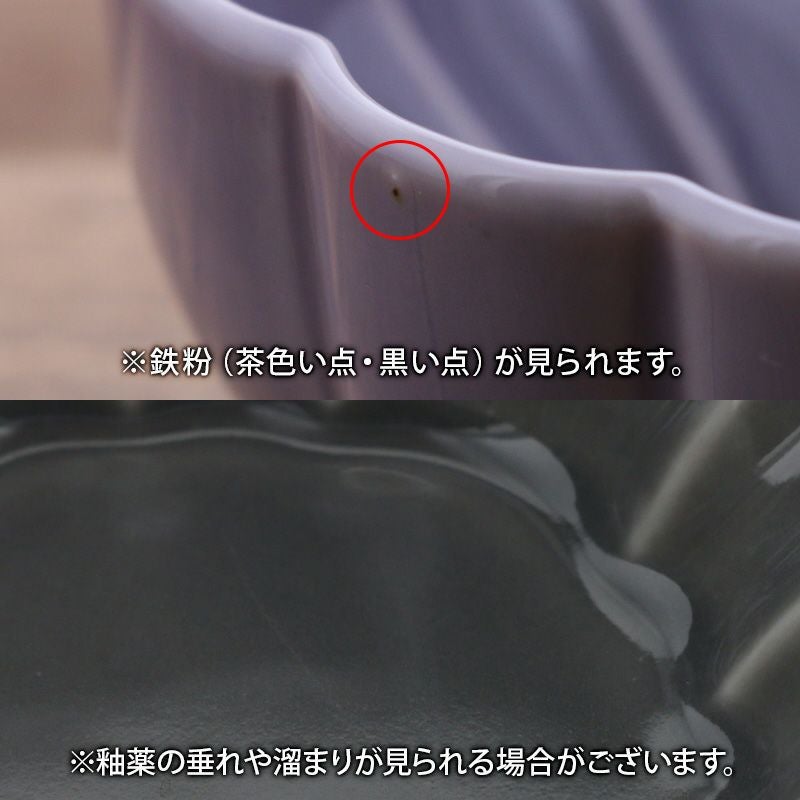 | 注意事項 | ※サイズは全て外寸になります。 ご注意 ※色むらがある場合がございます。 ※鉄粉(茶色い点・黒い点)が見られます。 ※釉薬の垂れや溜まりが見られる場合がございます。 ※お客様のお使いのモニター設定、お部屋の照明等により実際の商品と色味が異なって見える場合がございます。 ※画像に含まれる小物は使用イメージのために使用しています。 ※不明な点がございましたら、お気軽にお問い合わせ下さい。 |