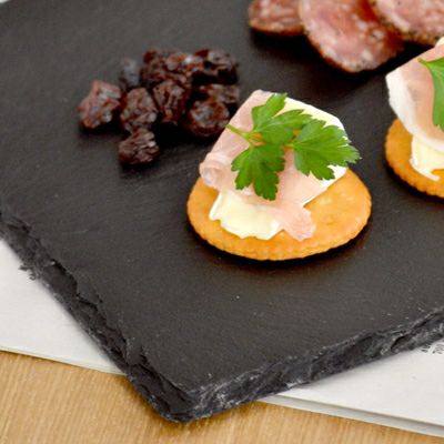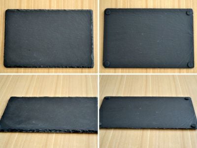 スレートとは天然石(粘板岩)を板状に切り出して作られたお皿です。 裏面には傷防止のクッションが貼ってあります。 縁は砕いたそのままの状態で、天然素材ならではの無骨な質感が魅力です。 食卓の上での存在感は抜群で、盛り付けた食材が引き立ち、大人のかっこいい食卓の演出が出来ます。 和洋問わず様々なシーンで楽しめ、フラットな形状はお膳のような使い方も。 まずはチーズボードや前菜プレートとして取り入れてみてください。