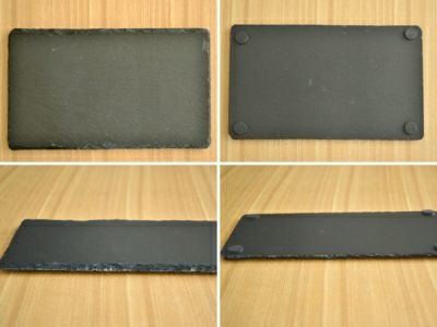 スレートとは天然石(粘板岩)を板状に切り出して作られたお皿です。 裏面には傷防止のクッションが貼ってあります。 縁は砕いたそのままの状態で、天然素材ならではの無骨な質感が魅力です。 食卓の上での存在感は抜群で、盛り付けた食材が引き立ち、大人のかっこいい食卓の演出が出来ます。 和洋問わず様々なシーンで楽しめ、フラットな形状はお膳のような使い方も。 まずはチーズボードや前菜プレートとして取り入れてみてください。