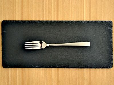 スレートとは天然石(粘板岩)を板状に切り出して作られたお皿です。 裏面には傷防止のクッションが貼ってあります。 縁は砕いたそのままの状態で、天然素材ならではの無骨な質感が魅力です。 食卓の上での存在感は抜群で、盛り付けた食材が引き立ち、大人のかっこいい食卓の演出が出来ます。 和洋問わず様々なシーンで楽しめ、フラットな形状はお膳のような使い方も。 チーズボードや前菜プレートとして取り入れてみてください。