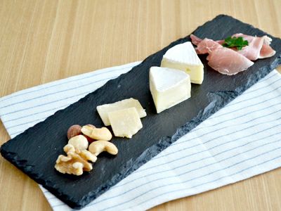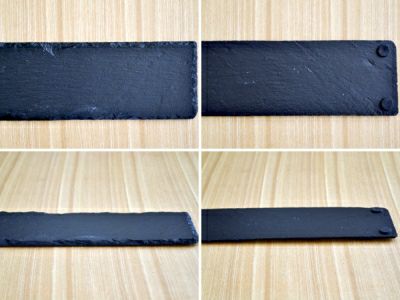 スレートとは天然石(粘板岩)を板状に切り出して作られたお皿です。 裏面には傷防止のクッションが貼ってあります。 縁は砕いたそのままの状態で、天然素材ならではの無骨な質感が魅力です。 食卓の上での存在感は抜群で、盛り付けた食材が引き立ち、大人のかっこいい食卓の演出が出来ます。 和洋問わず様々なシーンで楽しめ、フラットな形状はお膳のような使い方も。 チーズボードや前菜プレートとして取り入れてみてください。