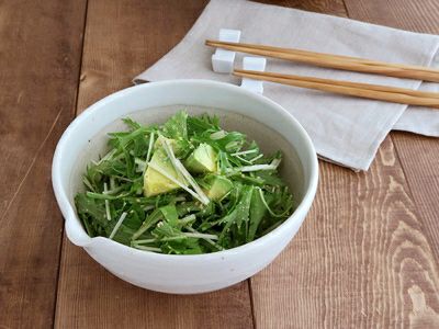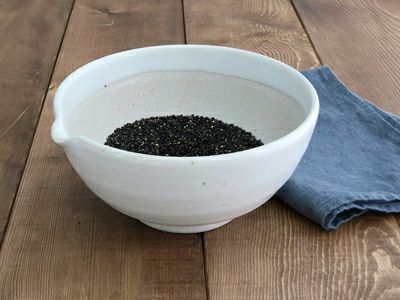 ゴマもとろろもたっぷり擦れる、大鉢サイズのすり鉢です。 和え物などもふんわり受け止める、白い素地が優しい印象。 和え物を作れば、家族分のおかずが入った副菜鉢、ラーメンの麺鉢、うどんのどんぶり、サラダボウルなど多用途にお使いいただけます。 ゴマなどを移す際に、こぼれない片口設計なので擂鉢の扱いもラクラク。 摺りたてのゴマの香りはとても良いものですよね。一家に一つは欲しいすり鉢です。