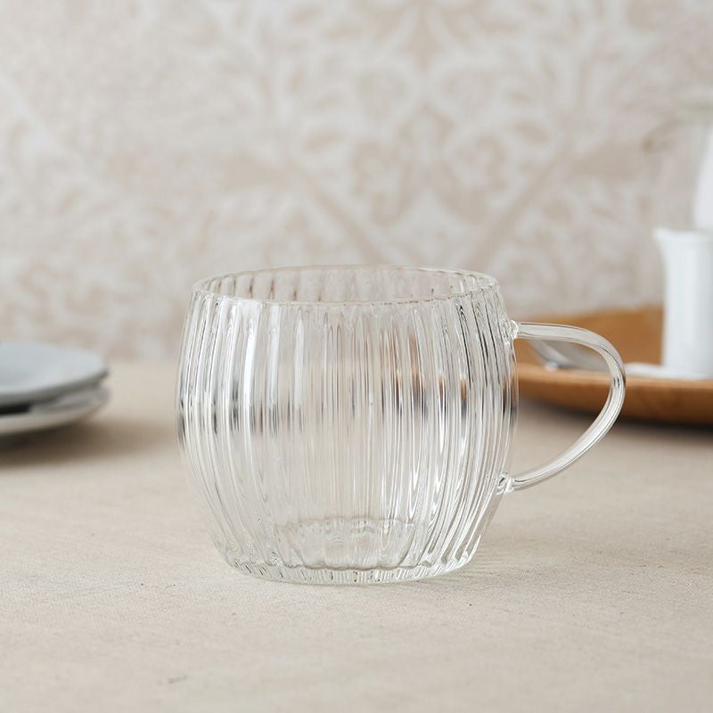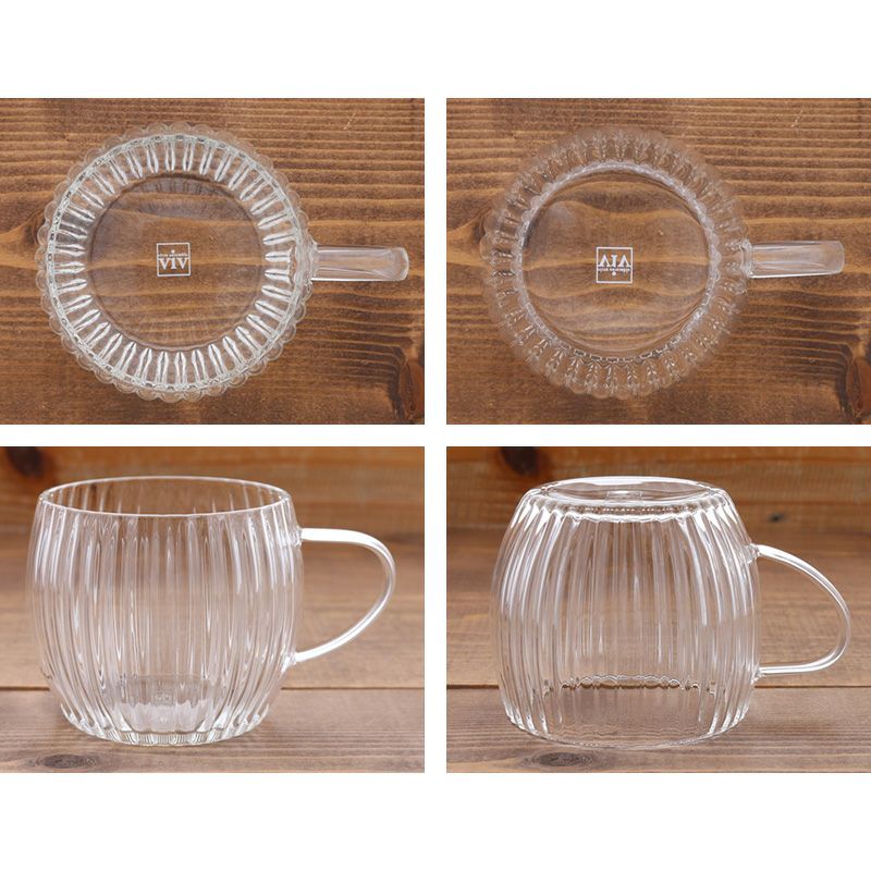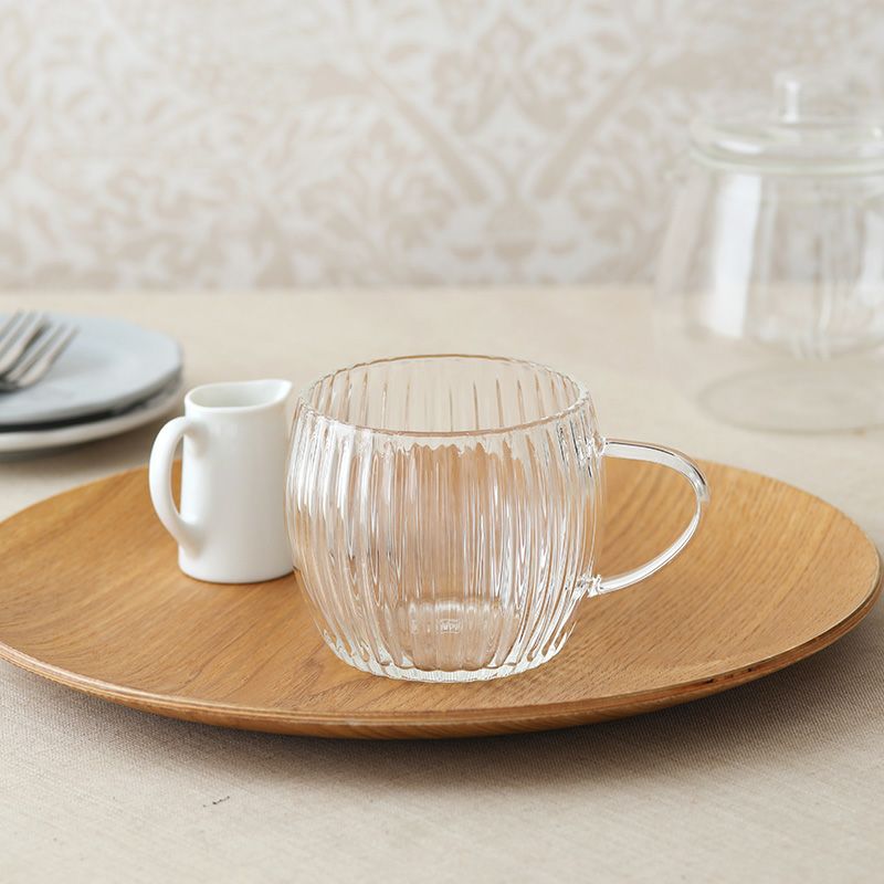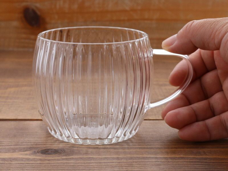 ドリンクの色も楽しめるガラス製のマグカップ。 プリーツのデザインがティータイムを上品に演出してくれます。 ほどよい大きさで朝食や食後のコーヒー、紅茶など普段使いのカップとしてはもちろん、おもてなし食器としてもおすすめです。 清潔感があり爽やかな印象を与えるガラスカップで、素敵なティータイムをお楽しみください。