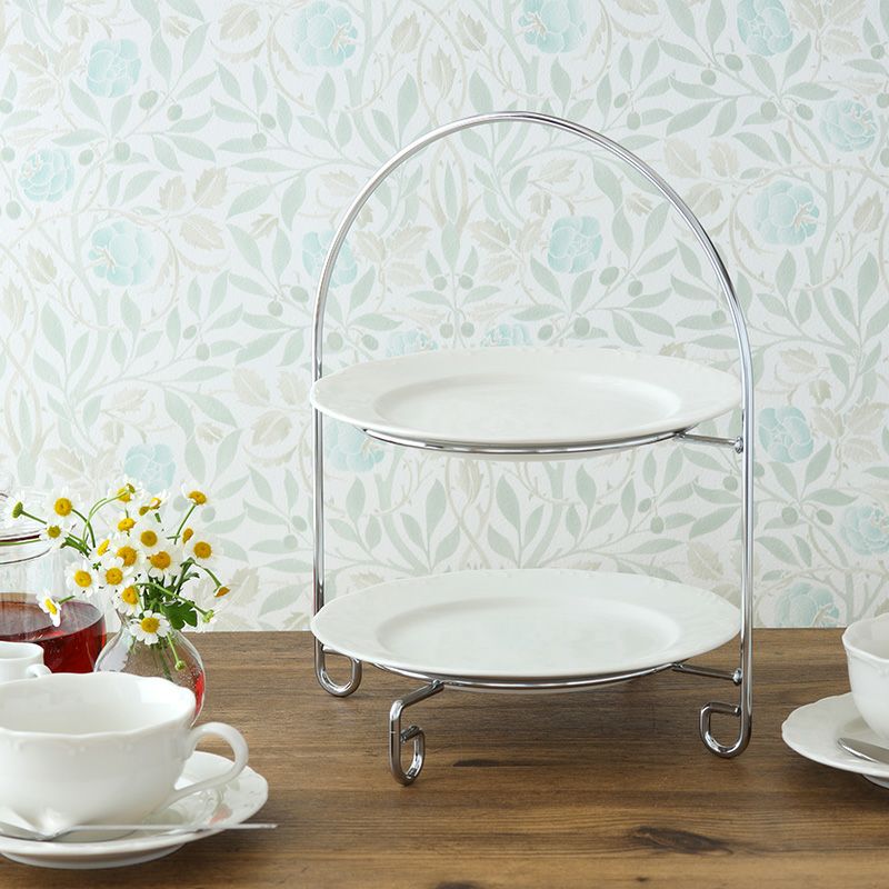 憧れのカフェやホテルのようなアフタヌーンティーをおうちで楽しめる2段ケーキスタンド。 サンドウィッチやケーキ・スコーンなどを並べて特別なティータイムを演出できますよ。 オードブルを並べてパーティ用食器としてもおすすめ。 シンプルな2段スタンドなのでお好みのお皿を組み合わせてお使いいただけます。18?21.5cmのプレート用。
