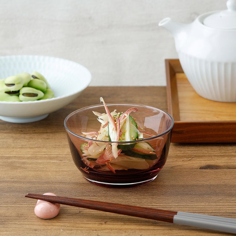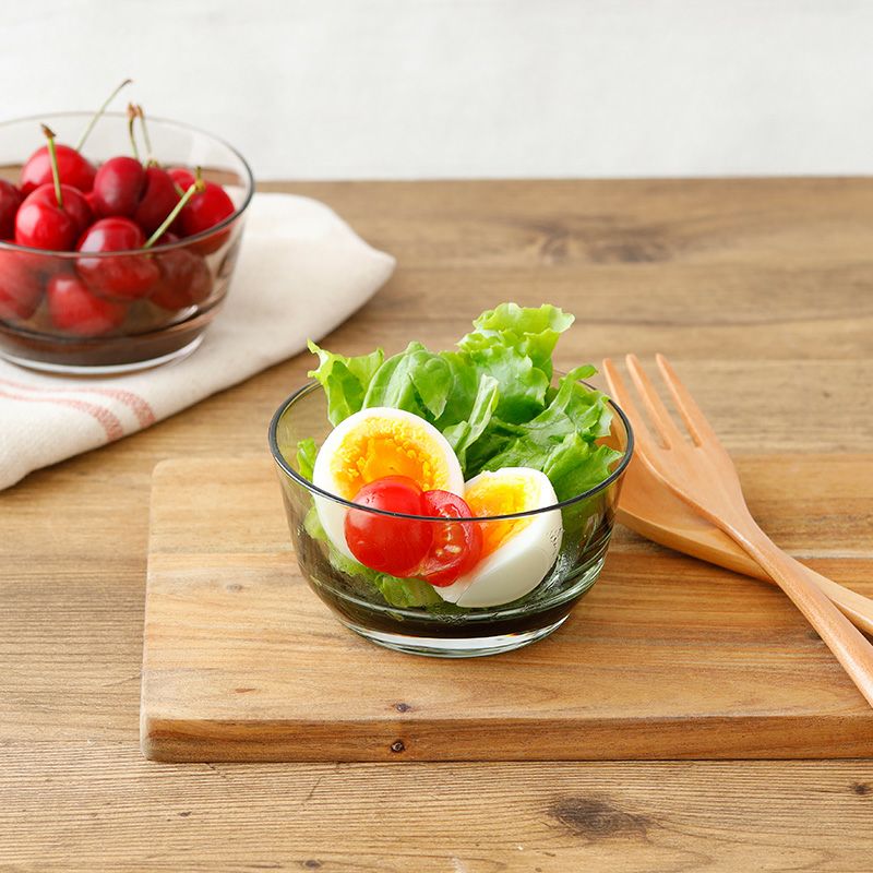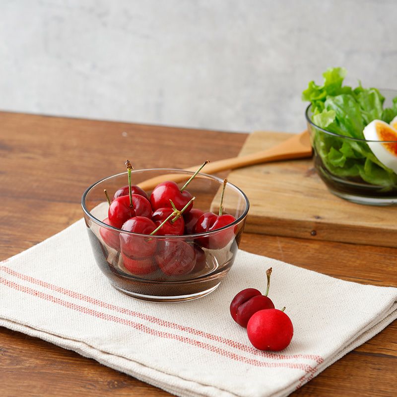 モダンで落ち着いた色合いのガラス製ボウル。 食卓をシックに演出してくれます。 和洋中どんな料理にもしっくり馴染んでくれるシンプルなデザイン。 サラダボウル、スープボウル、シリアルボウル、取り鉢などにおすすめです。